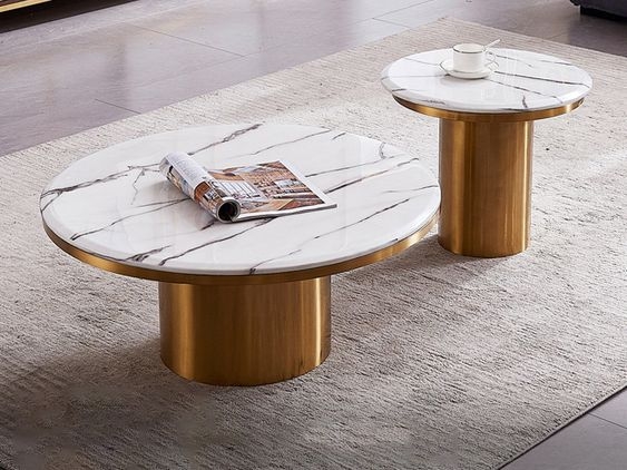 Bàn sofa chân inox mạ mặt đá là một sản phẩm nội thất sang trọng và độc đáo, kết hợp giữa chất liệu inox, mạ và đá tự nhiên.